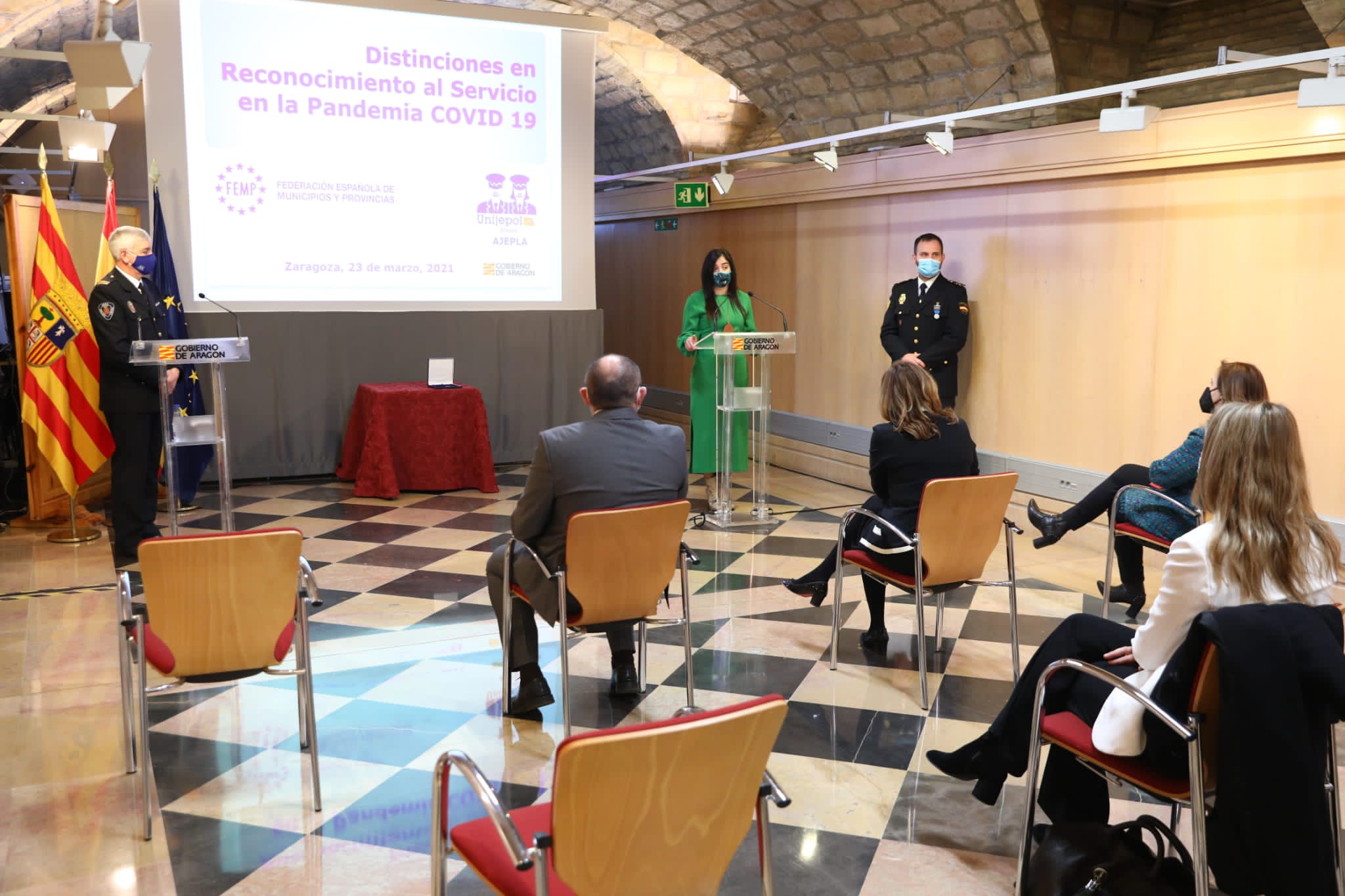 Ceremonia de entrega de las Medallas de Reconocimiento al Servicio en la Pandemia COVID 19 a funcionarios del Gobierno de Aragón (Zaragoza, 2021)